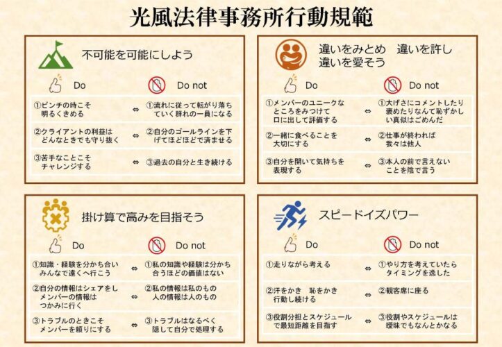 昨年からこの事務所が果たすべき役割やビジョン、そのために大切にしたい行動規範を皆で話し合い、更新しました。ホームページの「ビジョン」の項目に掲げていますので、ご覧ください。我々は毎日ここを原点として、ズレていないかを確認しながら歩んでいます。皆様のビジョンも是非、聞かせてください。